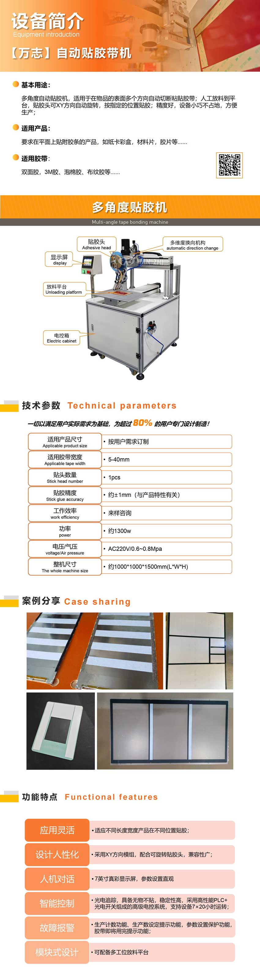 自動貼膠(jiāo)機,適用於在(zài)物品的表麵(miàn)多個方向自動切斷粘貼膠帶;人工放料到平台,貼膠頭可XY方向自動旋轉,按(àn)指定(dìng)的位置貼膠;精度好,設備小巧不占地,方便生產(chǎn);