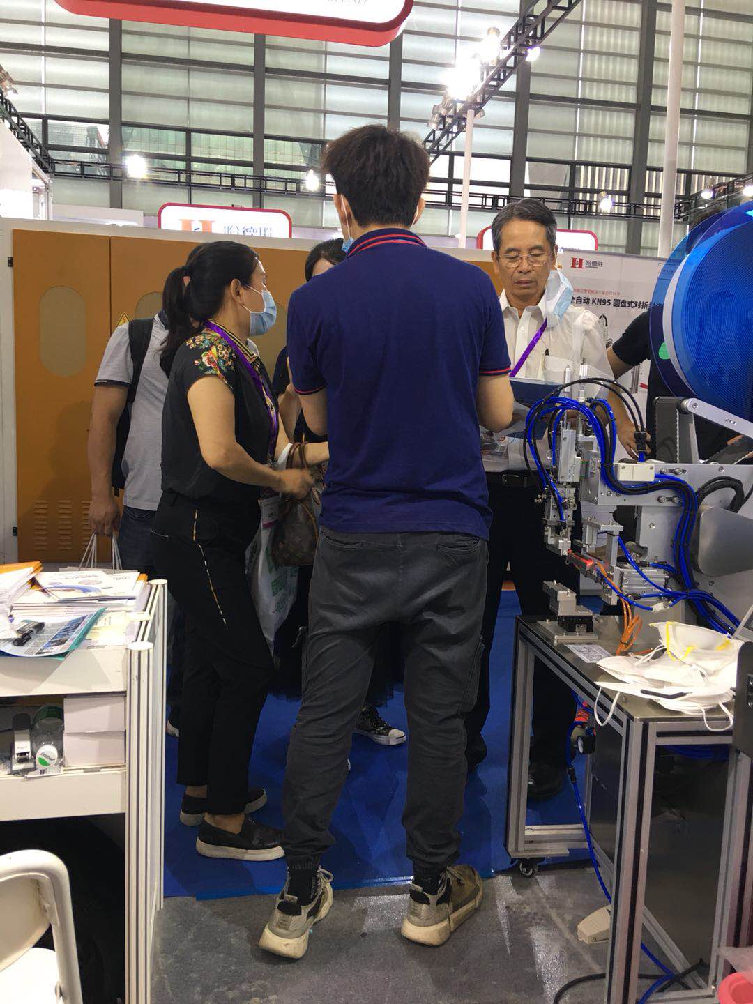 現場中獲得最多青睞(lài)的莫過於口罩鼻梁海綿條貼附機,適用範圍廣,市場上的KN95KN94以及各種杯型口罩都可以適(shì)用,有效解決了人工粘貼慢、變形、不規(guī)範等問題,這款小型又好用的機器在行業內(nèi),草莓视频在线观看18(zhì)公司最先研發(fā)成功的,也申(shēn)請了新型實用專利,是口罩機配套必選之一,理所當然成了我們這期展會的明星產品!