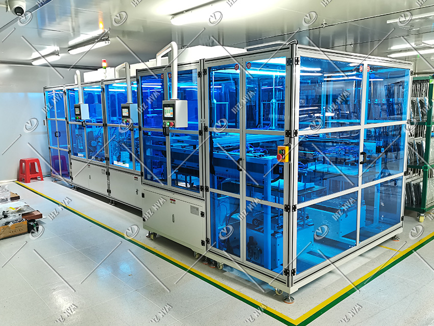 LED反射片貼標及壓合折邊機投放於(yú)無塵車(chē)間使用,設備采用ffu過濾設備(bèi),使外氣先通過MAU(外氣進(jìn)行(háng)首次過濾)進入無(wú)塵室(shì)頂部,再通過FFU(二次過濾)將風送進無塵室內,送下來(lái)的(de)風(fēng)通過(guò)高架地板,再進入(rù)回風箱送到無塵室頂部, 風速調節靈活,潔淨區易於變(biàn)更;